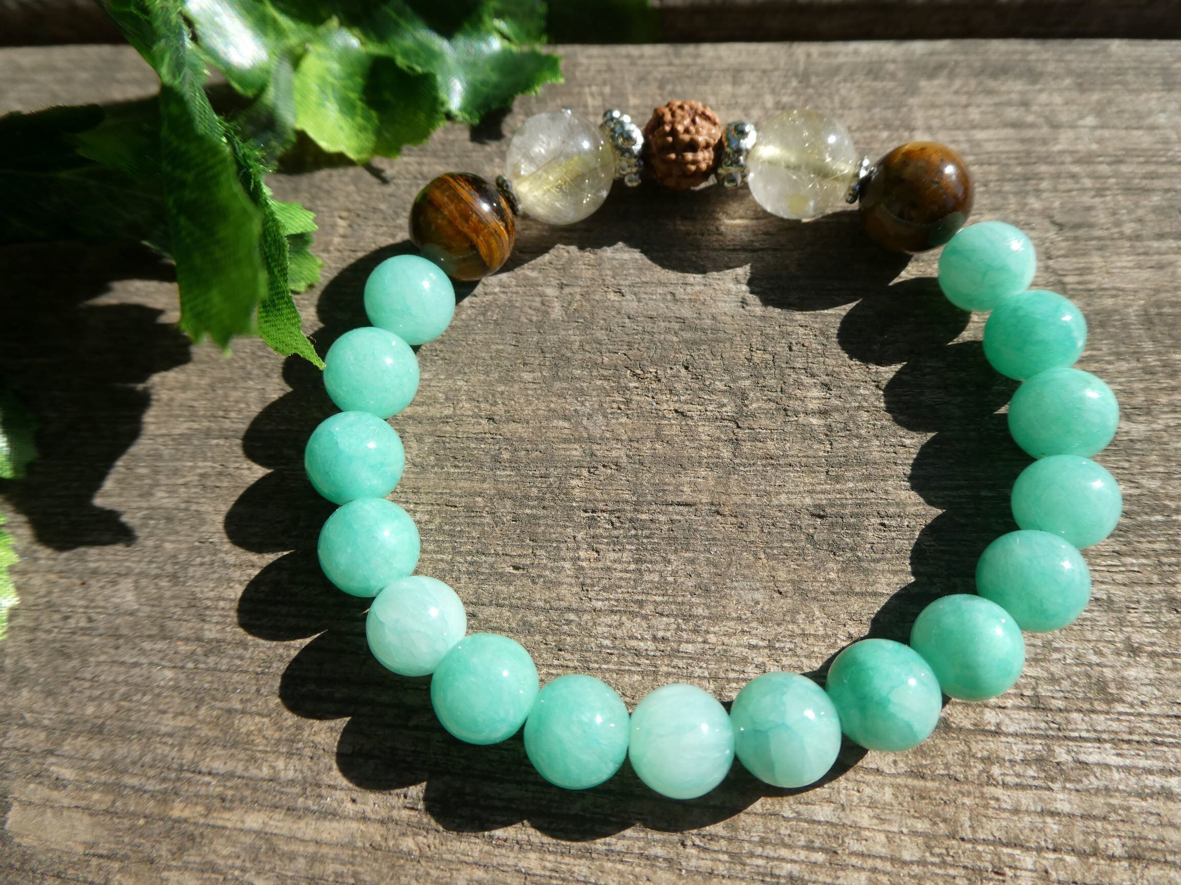 Spirit bracelet for Money and Business ~Rudraksha, Rutilated quartz,Tiger's-eye~
